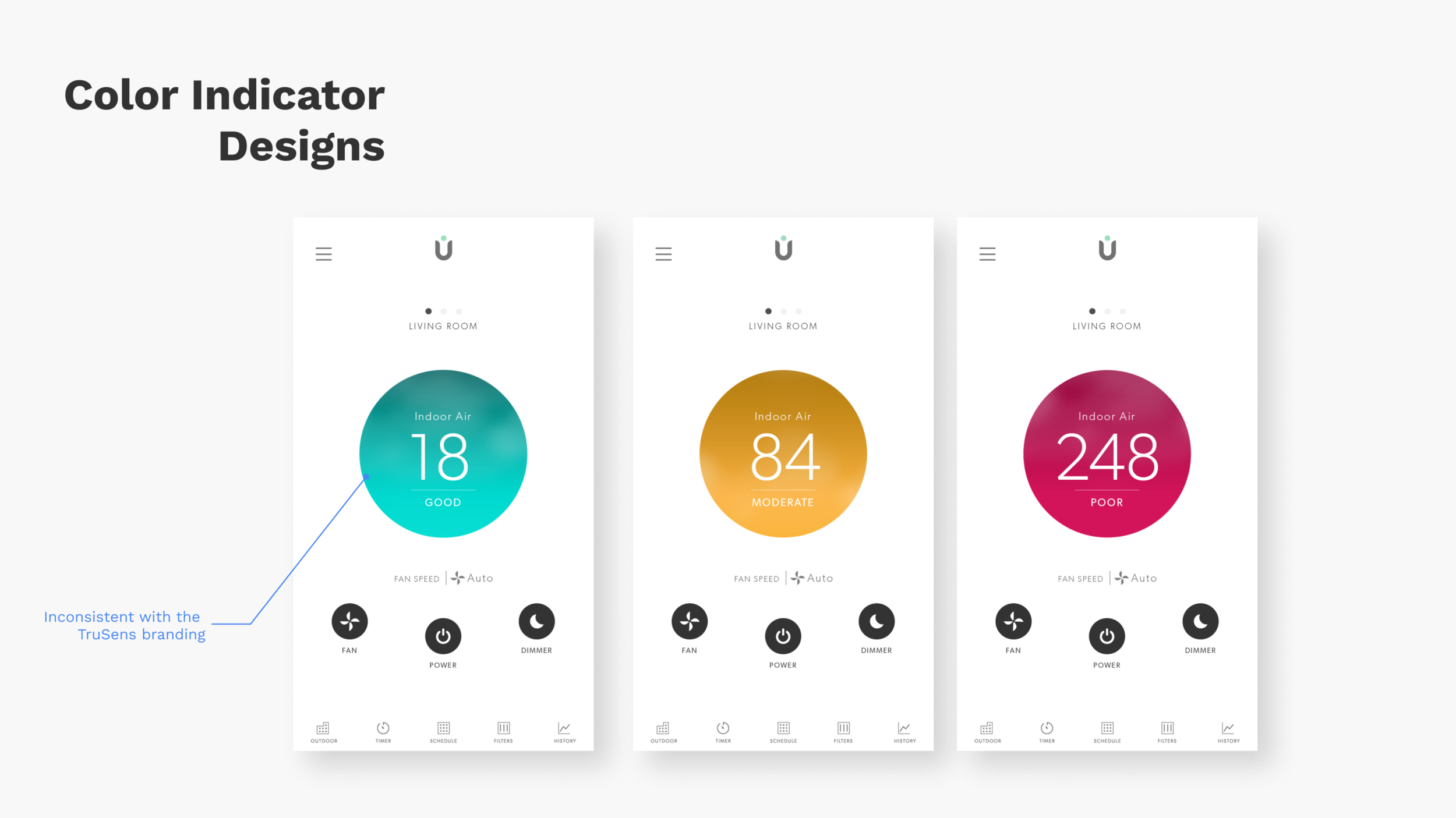 An additional assumption was to provide in-app notifications to encourage certain actions by the user. If the user suddenly has poor or moderate air quality and their unit is not in auto mode, the app would notify them to change to a different fan setting.