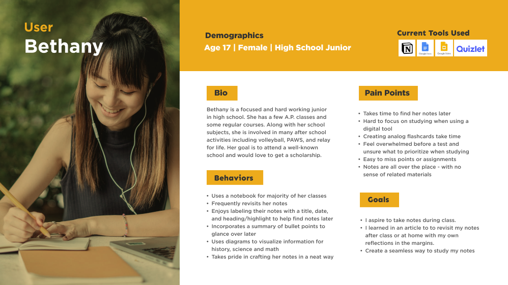 Students struggle with organizing and prioritizing their notes throughout the year and tend to consolidate content when a deadline is approaching.