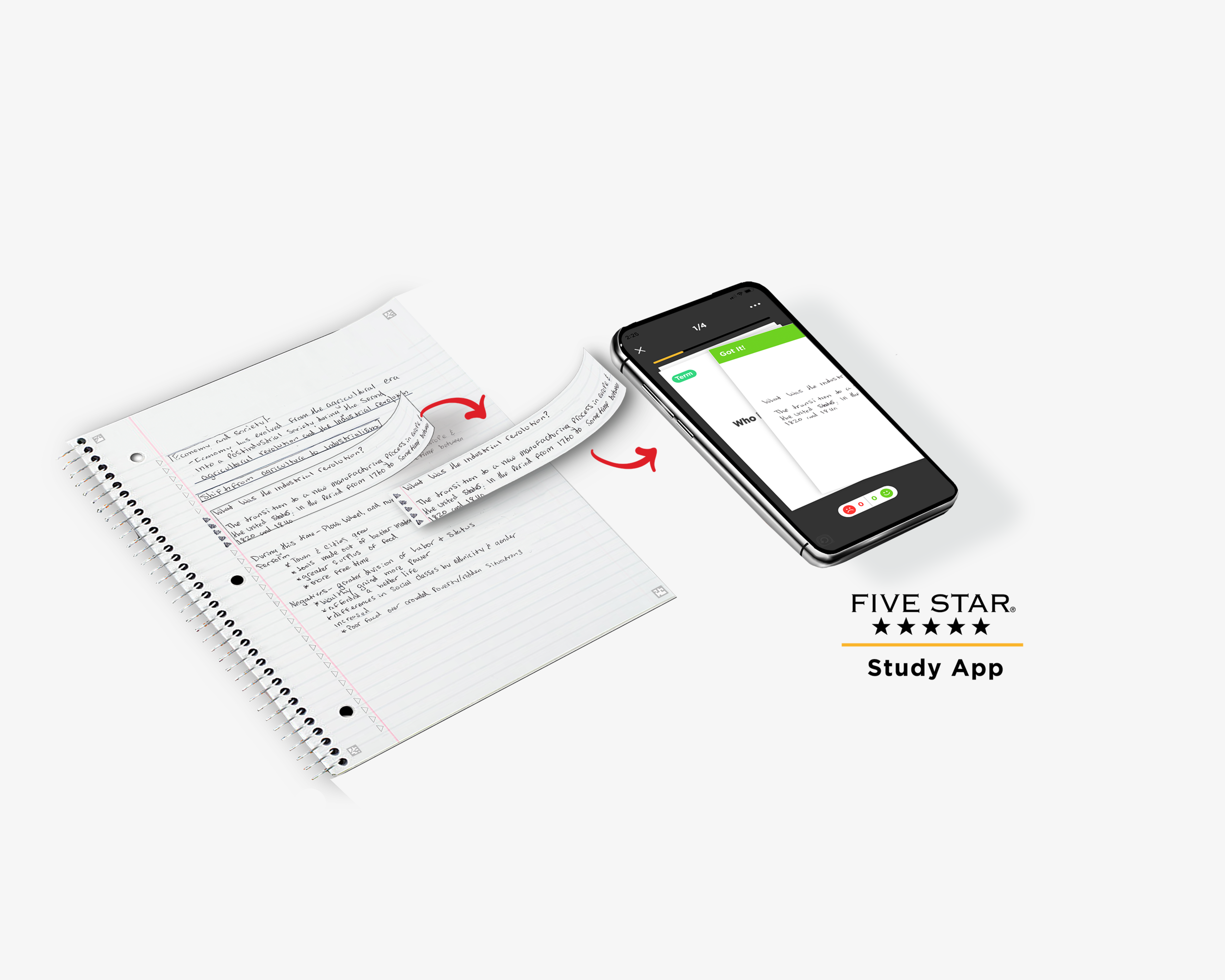 Students can identify important notes by marking the triangle symbols on their Five Star notebook page. The app scans the identified notes, enhances the scan and extracts the marked notes into digital flashcards.
